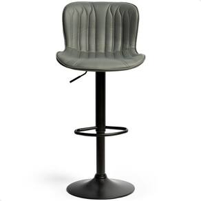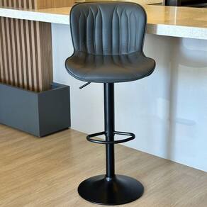 Banqueta Alta Para Cozinha Estofada Giratória Encosto Bar Cinza - P050