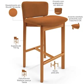 É dobrável: Não | OriginCountry: | ProductHeight: 83 cm | ProductWeight: 10 kg | Estilo: Clássico | Peso: 10 kg | É empilhável: Não | Cor do assento: Terracota | Altura do assento a partir do solo: 74 cm | Diâmetro: na | Material: Madeira e Espuma | ProductWarranty: 90 dias após o do produto | SizeDescription: Altura: 83cm x Largura: 47cm x Profundidade: 47cm | Largura: 47 cm | Quantidade de Caixas de embalagem: 1 | Altura da cadeira: 83 cm | Desenho do tecido: Liso | Model: Banqueta Dara | Cor: Terracota | SupplierSimpleName: Banqueta Alta Para Cozinha Sala de Jantar Bar Dara L02 Bouclê Terracota - Lyam Decor | Com estofado: Sim | Com espaço de armazenamento: Não | Requer montagem: Não | Profundidade da cadeira: 47 cm | Largura do assento: 45 cm | Profundidade do assento: 37 cm | Espessura do assento: na | Color: Terracota | OriginState: PR | MaterialFamily: Madeira e Espuma | ProductInstructions: Produto para uso residencial em ambiente interno, não devendo ficar exposto diretamente ao sol, calo | ProductLength: 47 cm | Material do estofamento: Bouclê | Com rodas: Não | ProductContents: 01 Banqueta | ProductWidth: 47 cm | Tipo de produto: Banqueta | Peso máximo suportado: 150 Kg | Com apoio de braços: Não | Cor da estrutura da cadeira: Castanho | É cadeira de balanço: Não | Fabricante: Lyam Decor | Cor do estofamento: Terracota | Largura da cadeira: 47 cm