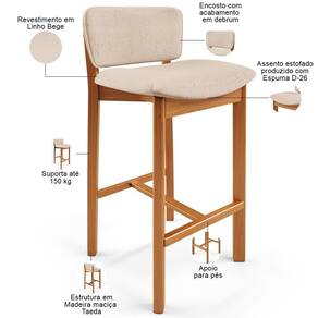 Altura da cadeira: 83 cm | Largura da cadeira: 47 cm | Espessura do assento: na | Altura do assento a partir do solo: 74 cm | Profundidade do assento: 37 cm | ProductLength: 47 cm | ProductWarranty: 90 dias após o do produto | ProductHeight: 83 cm | Com rodas: Não | Com estofado: Sim | Cor do assento: Bege | MaterialFamily: Madeira e Espuma | OriginCountry: | ProductContents: 01 Banqueta | Largura: 47 cm | Tipo de produto: Banqueta | Requer montagem: Não | Peso máximo suportado: 150 Kg | Material: Madeira e Espuma | ProductWeight: 10 kg | ProductWidth: 47 cm | SupplierSimpleName: Banqueta Alta Para Cozinha Sala de Jantar Bar Dara L02 Linho Bege - Lyam Decor | Estilo: Clássico | É cadeira de balanço: Não | Profundidade da cadeira: 47 cm | Cor: Bege | Model: Banqueta Dara | OriginState: PR | SizeDescription: Altura: 83cm x Largura: 47cm x Profundidade: 47cm | Com espaço de armazenamento: Não | Fabricante: Lyam Decor | Material do estofamento: Linho | Color: Bege | ProductInstructions: Produto para uso residencial em ambiente interno, não devendo ficar exposto diretamente ao sol, calo | Diâmetro: na | Peso: 10 kg | Quantidade de Caixas de embalagem: 1 | Cor do estofamento: Bege | Desenho do tecido: Liso | É empilhável: Não | É dobrável: Não | Com apoio de braços: Não | Largura do assento: 45 cm | Cor da estrutura da cadeira: Castanho