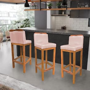 Transforme o seu espaço com a Banqueta Alta Rubi Veludo Base Fixa de Madeira.