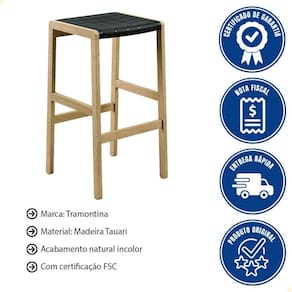 - Banqueta Alta Tramontina Potenza Preto em Madeira Tauari FSC com Acabamento Natural.