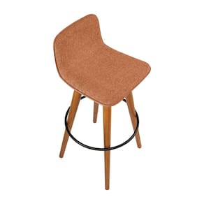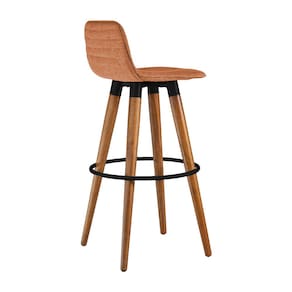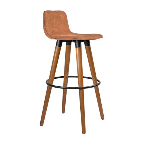 Banqueta Alta Versatil Luxo Aço Preto Base Carvalho para Cozinha Bancada Ilha - Terracota Linho