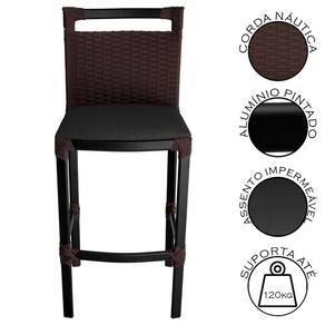 A Banqueta Vigor acrescenta um charme único a qualquer espaço, sendo ideal para quem busca combinar funcionalidade e estilo em ambientes externos. Produzida com material de alta qualidade e feita de forma artesanal. Sua estrutura é composta por alumínio e acabamentos em corda náutica, combinando durabilidade com estilo contemporâneo. Possui encosto fixo em corda náutica, que oferece um apoio confortável enquanto adiciona um toque de design único. Além disso, o assento é estofado impermeável garantindo conforto e praticidade, sendo adequada para áreas externas, como áreas gourmet, espaços de churrasqueira, edículas e outros ambientes ao ar livre.
