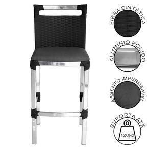 Banqueta Alta Vigor Em Alumínio E Fibra Sintética Preto/cinza A Banqueta Vigor acrescenta um charme unico a qualquer espaco, sendo ideal para quem busca combinar funcionalidade e estilo em ambientes externos. A Banqueta Vigor e uma peca ideal para transformar qualquer ambiente externo, unindo charme, funcionalidade e estilo. Meticulosamente produzido de forma artesanal, esse banquete se destaca pela utilizacao de materiais de alta qualidade. Sua estrutura e feita de aluminio polido, conhecida por sua leveza e resistencia a corrosao, garantindo durabilidade mesmo em condicoes climaticas adversas. Os acabamentos sao em fibra sintetica com tratamento anti-UV, que nao apenas prolongam a vida util da peca, mas tambem preservam suas propriedades e aparencia, tornando-a perfeita para areas expostas ao sol. O encosto fixo, tambem em fibra sintetica, proporciona um apoio ergonomico e confortavel, ao mesmo tempo em que adiciona um toque de design sofisticado e exclusivo. O assento e estofado com espuma D28, reconhecido por seu excelente suporte e conforto. Para completar, e revestido com tecido impermeavel, facilitando a limpeza e manutencao, alem de ser ideal para locais onde ha exposicao a umidade. A Banqueta Vigor se adapta perfeitamente a areas gourmet, espacos de churrasqueira, ediculas e outros ambientes ao ar livre, trazendo praticidade e praticidade a esses espacos. ESPECIFICACOES TECNICAS: - Material da Estrutura: Aluminio Polido; - Material do Assento: Espuma D28/Estofado impermeavel; - Material do Encosto: Fita Sintetica; - Possui Braco? Nao; - Possui Regulagem de Altura? Nao; - Quantidade de Lugar: 01 Lugar; - E Giratoria? Nao; - Suporta ate: 120 kg; - Garantia: 3 Meses; - Necessita de Montagem: Nao; - Instrucoes de Cuidado: Utilizar somente pano macio umedecido com agua e sabao neutro; - Dimensoes do Produto (LarguraXProfundidadeXAltura): 45x45x110cm; - Conteudo da Embalagem: 01 Banquetas; Marca: ACESSE MÓVEIS