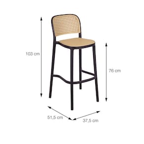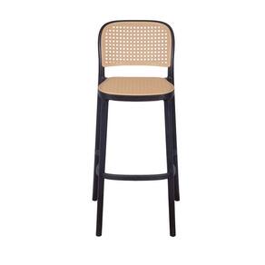 A Banqueta Amis confeccionada em polipropileno injetado, com assento simulando palha sextavada, tem um design sofisticado e moderno, trazendo ao mesmo tempo delicadeza e presença para o ambiente.
