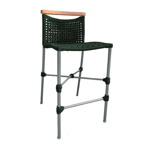 IMAGENS MERAMENTE ILUSTRATIVAS REALIZADO EDIÇÃO, PODENDO HAVER UMA PEQUENA VARIAÇÃO DE COR DEPENDENDO DE CADA TELA OU MONITOR.Banqueta Anne em Corda NÃutica Base em AlumÃnio Cinza com Detalhe em Madeira Verde Musgo