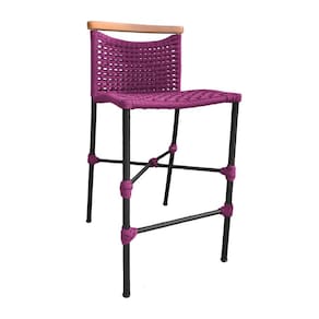 IMAGENS MERAMENTE ILUSTRATIVAS REALIZADO EDIÇÃO, PODENDO HAVER UMA PEQUENA VARIAÇÃO DE COR DEPENDENDO DE CADA TELA OU MONITOR.Banqueta Anne em Corda NÃutica Base em AlumÃnio Preta com Detalhe em Madeira Rosa