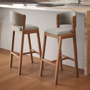 O assento é revestido em courino, um material que combina a aparência do couro com a praticidade de um tecido sintético. O courino é fácil de limpar e manter, tornando a banqueta uma escolha prática para o dia a dia. Além disso, o toque suave e a aparência sofisticada do courino complementam a beleza natural da madeira, criando um contraste harmonioso que enriquece a decoração do ambiente.