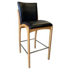 Banqueta Aura Alta Madeira Maciça E Courino Preto Design Moderno Conforto Com Apoio Para Pés Mobília Decor