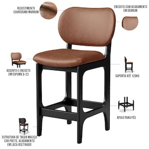 Amplamente sofisticada, a Banqueta Baixa Bar Cozinha Sala Jantar Betta L02 Couríssimo Marrom - Lyam Decor irá agregar ainda mais valor em sua decoração!! Sendo capaz de compor muito bem o ambiente, é produzida com materiais de excelente qualidade, a resistente estrutura em madeira de Taeda, na cor Preto, conta com apoio para os pés (que garante maior segurança), além do assento e encosto estofados super confortáveis e convidativos, que são revestidos em tecido Couríssimo, composição extremamente elegante.