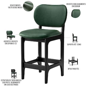 Amplamente sofisticada, a Banqueta Baixa Bar Cozinha Sala Jantar Betta L02 Facto Verde Musgo - Lyam Decor irá agregar ainda mais valor em sua decoração!! Sendo capaz de compor muito bem o ambiente, é produzida com materiais de excelente qualidade, a resistente estrutura em madeira de Taeda, na cor Preto, conta com apoio para os pés (que garante maior segurança), além do assento e encosto estofados super confortáveis e convidativos, que são revestidos em tecido Couríssimo, composição extremamente elegante.