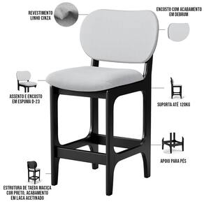 Amplamente sofisticada, a Banqueta Baixa Bar Cozinha Sala Jantar Betta L02 Linho Cinza - Lyam Decor irá agregar ainda mais valor em sua decoração!! Sendo capaz de compor muito bem o ambiente, é produzida com materiais de excelente qualidade, a resistente estrutura em madeira de Taeda, na cor Preto, conta com apoio para os pés (que garante maior segurança), além do assento e encosto estofados super confortáveis e convidativos, que são revestidos em tecido Couríssimo, composição extremamente elegante.