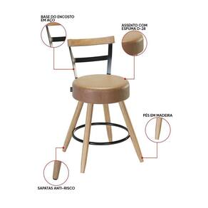 Banqueta Baixa Cozinha 50cm Encosto Pé Madeira Kyara Pu S02 - D'rossi Caramelo A Banqueta Baixa Kyara, com 79 cm de altura total e 50 cm do assento ao chão, revestida em PU, é a escolha certa para quem busca conforto e elegância em um único móvel. O design robusto, de traços marcantes e formato redondo, cria uma estética retrô ideal para compor salas de jantar, varandas gourmet ou áreas externas cobertas. Sua estrutura é fabricada em aço carbono combinado com madeira de reflorestamento (eucalipto seco). O assento fixo possui espuma D-28 de 2 cm de altura, que oferece conforto excepcional para uso prolongado. O encosto fixo e o apoio para pés, localizado a 17 cm de altura, garantem maior comodidade. A base em MDF e MDP de 15 mm proporciona sustentação firme, suportando até 110 kg sem impacto. Os pés rosqueáveis em madeira maciça natural adicionam sofisticação e permitem fácil nivelamento do móvel. A Banqueta foi feita para quem deseja uma peça que se destaque na decoração. Dimensões do Produto: Altura: 79 cm Largura: 38 cm Profundidade: 38 cm Peso: 7 kg Outras medidas: Altura da espuma do assento: 2 cm Altura para apoio dos pés: 17 cm Altura dos pés: 40 cm Altura do Assento até o Chão: 50 cm Especificações do Produto: Material da Estrutura: Aço Carbono e Madeira de reflorestamento (eucalipto seco) evitando fungo e mofo. Base do Assento: MDF e MDP de 15 mm Peso Suportado: Até 110 Kg sem impacto Acabamento: Pintura epóxi Revestimento do Assento: Sintético PU Tipo de Assento: Fixo Possui Almofada no Assento: Sim, Fixa Material do Assento: Almofada com Espuma Enchimento do Assento: Espuma D-28 Possui Encosto: Sim Tipo de Encosto: Fixo Possui Pés: Sim Quantidade de Pés: 04 pés Tipo de Pés: Pés rosqueáveis em madeira maciça natural Possui apoio de pés: Sim É Giratória: Não Possui Apoio para Braços: Não Possui Altura Regulável: Não Possui Rodízios: Não Diferenciais: Design Moderno; Estrutura fixada com grampos galvanizados, proporcionando fixação firme e acabamento resistente à oxidação. Manual de Montagem: Acompanha manual e todos os acessórios para montagem. Complexidade da Montagem: Baixa Montagem: O produto vai montado, apenas rosquear os pés Garantia: 90 dias contra de fabricação Instruções de Limpeza: Utilizar um pano limpo e levemente úmido Quantidade de Volumes: 1 Caixa Medida das Embalagens: Caixa 1: 73x47x20cm : É feita somente até o térreo ou portaria. Confira sempre as medidas das embalagens para assegurar que o produto passe por portas e escadas do .