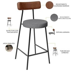 Amplamente moderna, dispondo de muito realce e design singular, a Banqueta Baixa Para Cozinha Sala De Jantar Bar Bancada Milão L02 Couríssimo Marrom Linho Cinza Escuro - Lyam Decor vem com a personalidade e elegância que sua decoração merece! Estruturada em aço carbono, contrasta lindamente com o encosto e assento estofados, cabe mencionar ainda seu revestimento em Couríssimo, é confeccionada por materiais de excelente qualidade, extremamente resistentes e aconchegantes.