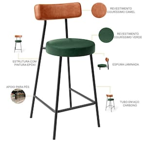 Amplamente moderna, dispondo de muito realce e design singular, a Banqueta Baixa Para Cozinha Sala De Jantar Bar Bancada Milão L02 Couríssimo Camel Facto Verde Musgo - Lyam Decor vem com a personalidade e elegância que sua decoração merece! Estruturada em aço carbono, contrasta lindamente com o encosto e assento estofados, cabe mencionar ainda seu revestimento em Couríssimo, é confeccionada por materiais de excelente qualidade, extremamente resistentes e aconchegantes.