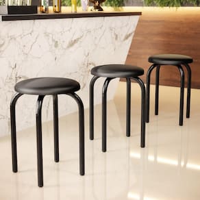 Um item essencial e você vai se encantar com a praticidade. Conheça a Banqueta Baixa Empilhável em Aço Maviê Sintético Preto, da Mpozenato!