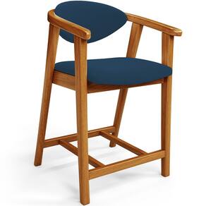 Banqueta Baixa Para Cozinha Sala de Jantar Bancada Cecília L02 Suede Azul Marinho - Lyam Decor