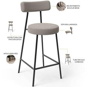 Amplamente moderna, dispondo de muito realce e design singular, a Banqueta Baixa Para Cozinha Sala De Jantar Bar Bancada Milão L02 Bouclê Bege - Lyam Decor vem com a personalidade e elegância que sua decoração merece! Estruturada em aço carbono, contrasta lindamente com o encosto e assento estofados, cabe mencionar ainda seu revestimento em Bouclê, é confeccionada por materiais de excelente qualidade, extremamente resistentes e aconchegantes.