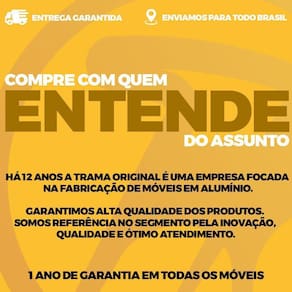 Ao adquirir uma peca , tenha a seguranca em comprar com quem entende do assunto! A empresa e pioneira no ramo de vendas e-commerce de moveis artesanais, ha mais de 15 anos no mercado, focada na qualidade, garante uma excelente experiencia aos seus clientes. Atentos as tendencias, busca sempre a inovacao e variedade dos seus produtos. Ao adquirir qualquer um de nossos moveis, estara adquirindo confianca, credibilidade, conforto e comprometimento, equilibrando qualidade e preco justo!