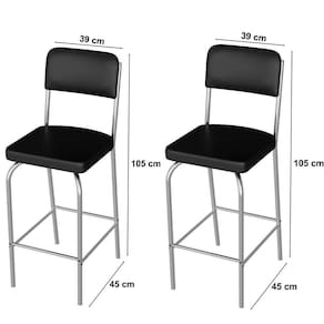 Banqueta Alta Vintage com Assento e Encosto Sintético Preto , Pés Aço Cromados
