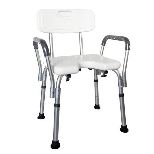 banqueta de banho com encosto e alças, cadeira de banho mobil saúde, banquinho alumínio antiderrapante, banco de banho com abertura frontal, assento para higiene íntima, acessibilidade banheiro, apoio para idosos banho