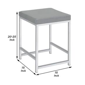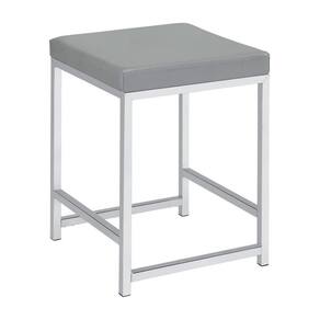 Banqueta com assento de couro sintético e estrutura tubular cinza