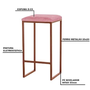Banqueta Decorativa Billie Base Bronze Suede Rosa - Gran Belo é um modelo super prático e tradicional, podendo ser usado em qualquer ambiente, como cozinha, área gourmet ou até mesmo em restaurantes e bistrôs, dando um ar despojado para o espaço. Aproveite a oportunidade e garanta já a sua!