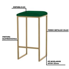 Banqueta Decorativa Billie Base Gold Suede Verde - Gran Belo é um modelo super prático e tradicional, podendo ser usado em qualquer ambiente, como cozinha, área gourmet ou até mesmo em restaurantes e bistrôs, dando um ar despojado para o espaço. Aproveite a oportunidade e garanta já a sua!