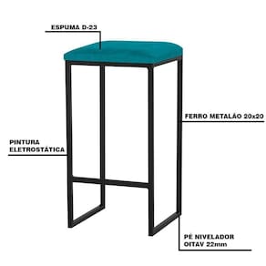 Banqueta Decorativa Billie Base Preta Suede Azul Claro - Gran Belo É um modelo super prático e tradicional, podendo ser usado em qualquer ambiente, como cozinha, área gourmet ou até mesmo em restaurantes e bistrôs, dando um ar despojado para o espaço. Aproveite a oportunidade e garanta já a sua!