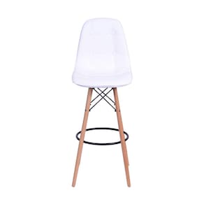 Produto: Banqueta Boxbit DKR Eames Acabamento em Botonê Branca Base Madeira