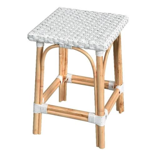Variações na tonalidade e nas marcas são normais e podem ser esperadas com os materiais naturais utilizados na construção deste produto. Especificações: Montagem necessária: Não Dimensões do produto: 16,5 “L x 16,5” P x 24" H Peso do produto: 8 libras Capacidade de peso: 500 libras Material: rattan, rattan sintético de poliuretano (PE) Cor/acabamento: branco brilhante/estrutura de vime natural - O