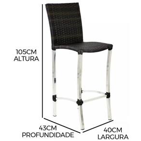 Dimensoes: Altura total: 105cm Altura assento ao chao: 75cm Largura: 37cm Profundidade total: 44cm Suporta ate 170 kg