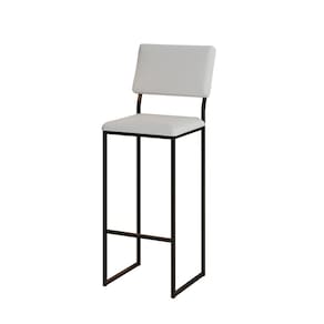 Características: Tipo: Banqueta Modelo: Nina Estilo: Industrial e Moderno Estrutura: Aço Carbono Preto Assento: Estofado Tecido do Assento: Corino Cor do Assento: Branco