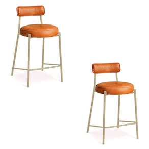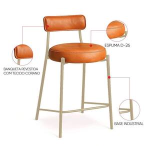 Banqueta Cozinha Alta Com Encosto Industrial Champanhe Kit 2 Londres Pu Whisky D03 - D'rossi