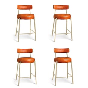 Banqueta Cozinha Alta Com Encosto Industrial Champanhe Kit 4 Londres Pu D03 - D'rossi Cor Nozes Renove sua cozinha, área gourmet ou ambiente comercial com o kit 4 Banquetas Alta Londres em sintético PU. Com 95 cm de altura total e 75 cm do assento ao chão, possui a proporção perfeita para bancadas e ilhas altas, garantindo conforto e ergonomia em cada uso. A estrutura em aço carbono na cor champanhe combinada à madeira de reflorestamento assegura resistência e durabilidade, enquanto o acabamento em pintura epóxi protege e realça o visual industrial da peça. O assento e o encosto fixos, estofados em espuma D-26 de alta densidade, proporcionam maciez e sustentação ideais. O revestimento agrega sofisticação e é fácil de limpar, mantendo o aspecto elegante por muito mais tempo. Seu design industrial apresenta base metálica vazada, que traz leveza visual e robustez estrutural, além de apoio para os pés integrado e capacidade para até 120 kg com total segurança. A Banqueta Londres é a escolha certa para quem busca elegância, praticidade e conforto em um só produto. Dimensões do Produto: