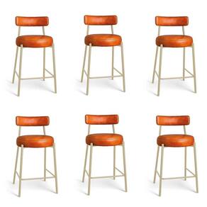 Banqueta Cozinha Alta Com Encosto Industrial Champanhe Kit 6 Londres Pu D03 - D'rossi Nozes Renove sua cozinha, área gourmet ou ambiente comercial com o kit 6 Banquetas Alta Londres em sintético PU. Com 95 cm de altura total e 75 cm do assento ao chão, possui a proporção perfeita para bancadas e ilhas altas, garantindo conforto e ergonomia em cada uso. A estrutura em aço carbono na champanhe combinada à madeira de reflorestamento assegura resistência e durabilidade, enquanto o acabamento em pintura epóxi protege e realça o visual industrial da peça. O assento e o encosto fixos, estofados em espuma D-26 de alta densidade, proporcionam maciez e sustentação ideais. O revestimento agrega sofisticação e é fácil de limpar, mantendo o aspecto elegante por muito mais tempo. Seu design industrial apresenta base metálica vazada, que traz leveza visual e robustez estrutural, além de apoio para os pés integrado e capacidade para até 120 kg com total segurança. A Banqueta Londres é a escolha certa para quem busca elegância, praticidade e conforto em um só produto. Dimensões do Produto: