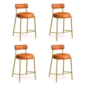 Banqueta Cozinha Alta Com Encosto Industrial Dourado Kit 4 Londres Pu Whisky D03 - D'rossi Renove sua cozinha, área gourmet ou ambiente comercial com o kit 4 Banquetas Alta Londres em sintético PU Whisky. Com 95 cm de altura total e 75 cm do assento ao chão, possui a proporção perfeita para bancadas e ilhas altas, garantindo conforto e ergonomia em cada uso. A estrutura em aço carbono na dourada combinada à madeira de reflorestamento assegura resistência e durabilidade, enquanto o acabamento em pintura epóxi protege e realça o visual industrial da peça. O assento e o encosto fixos, estofados em espuma D-26 de alta densidade, proporcionam maciez e sustentação ideais. O revestimento agrega sofisticação e é fácil de limpar, mantendo o aspecto elegante por muito mais tempo. Seu design industrial apresenta base metálica vazada, que traz leveza visual e robustez estrutural, além de apoio para os pés integrado e capacidade para até 120 kg com total segurança. A Banqueta Londres é a escolha certa para quem busca elegância, praticidade e conforto em um só produto. Dimensões do Produto: