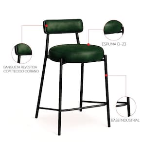 Banqueta Cozinha Alta Com Encosto Industrial Preto Kit 2 Londres Pu Verde D03 - D'rossi