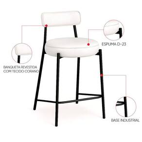 Banqueta Cozinha Alta Com Encosto Industrial Preto Kit 3 Londres Pu D03 - D'rossi Cor Branco