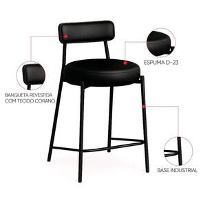 Banqueta Cozinha Alta Com Encosto Industrial Preto Kit 3 Londres Pu D03 - D'rossi Cor Preto