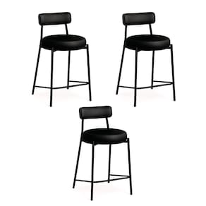 Renove sua cozinha, área gourmet ou ambiente comercial com o kit 3 Banquetas Alta Londres em sintético PU. Com 95 cm de altura total e 75 cm do assento ao chão, possui a proporção perfeita para bancadas e ilhas altas, garantindo conforto e ergonomia em cada uso. A estrutura em aço carbono na cor preta combinada à madeira de reflorestamento assegura resistência e durabilidade, enquanto o acabamento em pintura epóxi protege e realça o visual industrial da peça. O assento e o encosto fixos, estofados em espuma D-26 de alta densidade, proporcionam maciez e sustentação ideais. O revestimento agrega sofisticação e é fácil de limpar, mantendo o aspecto elegante por muito mais tempo. Seu design industrial apresenta base metálica vazada, que traz leveza visual e robustez estrutural, além de apoio para os pés integrado e capacidade para até 120 kg com total segurança. A Banqueta Londres é a escolha certa para quem busca elegância, praticidade e conforto em um só produto.