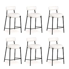 Banqueta Cozinha Alta Com Encosto Industrial Preto Kit 6 Londres Pu Branco D03 - D'rossi