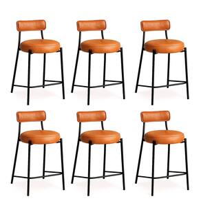 Banqueta Cozinha Alta com Encosto Industrial Preto Kit 6 Londres PU D03 - D`Rossi - Caramelo