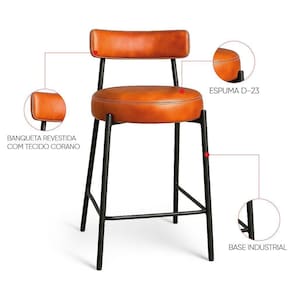 Banqueta Cozinha Alta Com Encosto Industrial Preto Londres Pu Nozes D03 - D`rossi