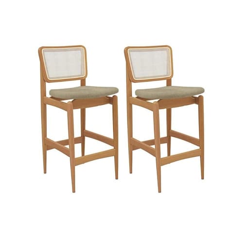 Banqueta Sala de Jantar Liz 1BMM009CA Premium Madeira Maciça Kit 2 Un Carvalho/Boucle Bege/Tela Bege Kappesberg