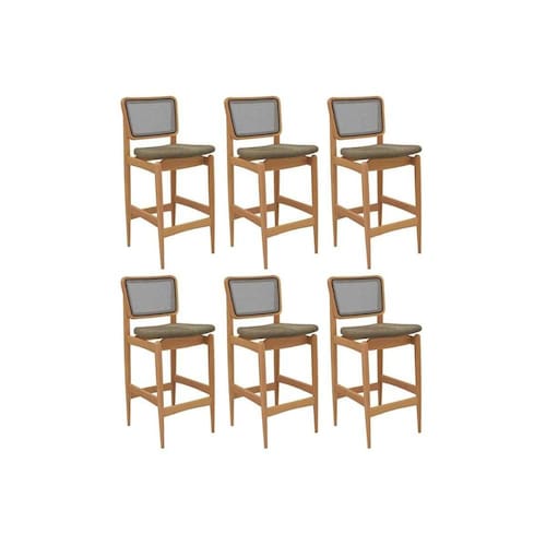 Banqueta Sala de Jantar Liz 1BMM009CA Premium Madeira Maciça Kit 6 Un Carvalho/Boucle Bege Fendi/Tela Bege Kappesberg