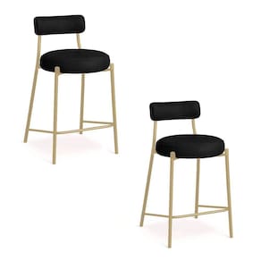 Banqueta Cozinha Média Com Encosto Industrial Champanhe Kit 2 Londres Pu Preto D03 - D'rossi