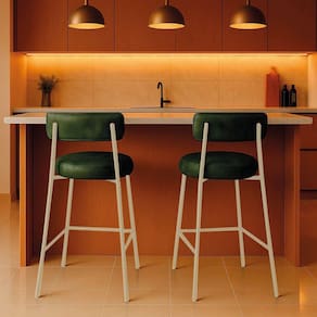 Renove sua cozinha, área gourmet ou ambiente comercial com o kit 2 Banquetas Média Londres em sintético PU Verde. Com 85 cm de altura total e 65 cm do assento ao chão, possui a proporção perfeita para bancadas e ilhas médias, garantindo conforto e ergonomia em cada uso. A estrutura em aço carbono na champanhe combinada à madeira de reflorestamento assegura resistência e durabilidade, enquanto o acabamento em pintura epóxi protege e realça o visual industrial da peça. O assento e o encosto fixos, estofados em espuma D-26 de alta densidade, proporcionam maciez e sustentação ideais. O revestimento agrega sofisticação e é fácil de limpar, mantendo o aspecto elegante por muito mais tempo. Seu design industrial apresenta base metálica vazada, que traz leveza visual e robustez estrutural, além de apoio para os pés integrado e capacidade para até 120 kg com total segurança. A Banqueta Londres é a escolha certa para quem busca elegância, praticidade e conforto em um só produto.