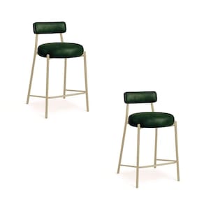 Banqueta Cozinha Média Com Encosto Industrial Champanhe Kit 2 Londres Pu Verde D03 - D'rossi