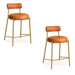 Banqueta Cozinha Média Com Encosto Industrial Dourado Kit 2 Londres Pu Whisky D03 - D'rossi